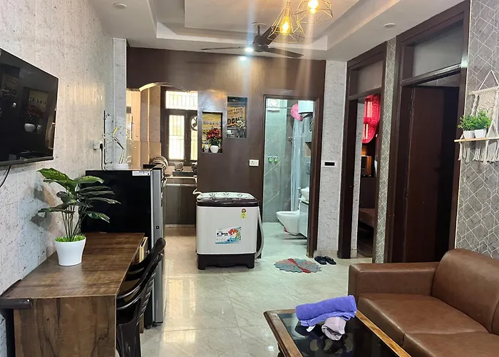 広々としたニューデリーLuxury Private 3Bhk Flat Delhi Airport Wi-Fi Free Parking 101アパートメントはティハール刑務所から車で10分で、ディリー ハットから2.5キロメートル離れた所の場所にあります。 敷地内で自転車をレンタルして、周辺エリアを探索できます。